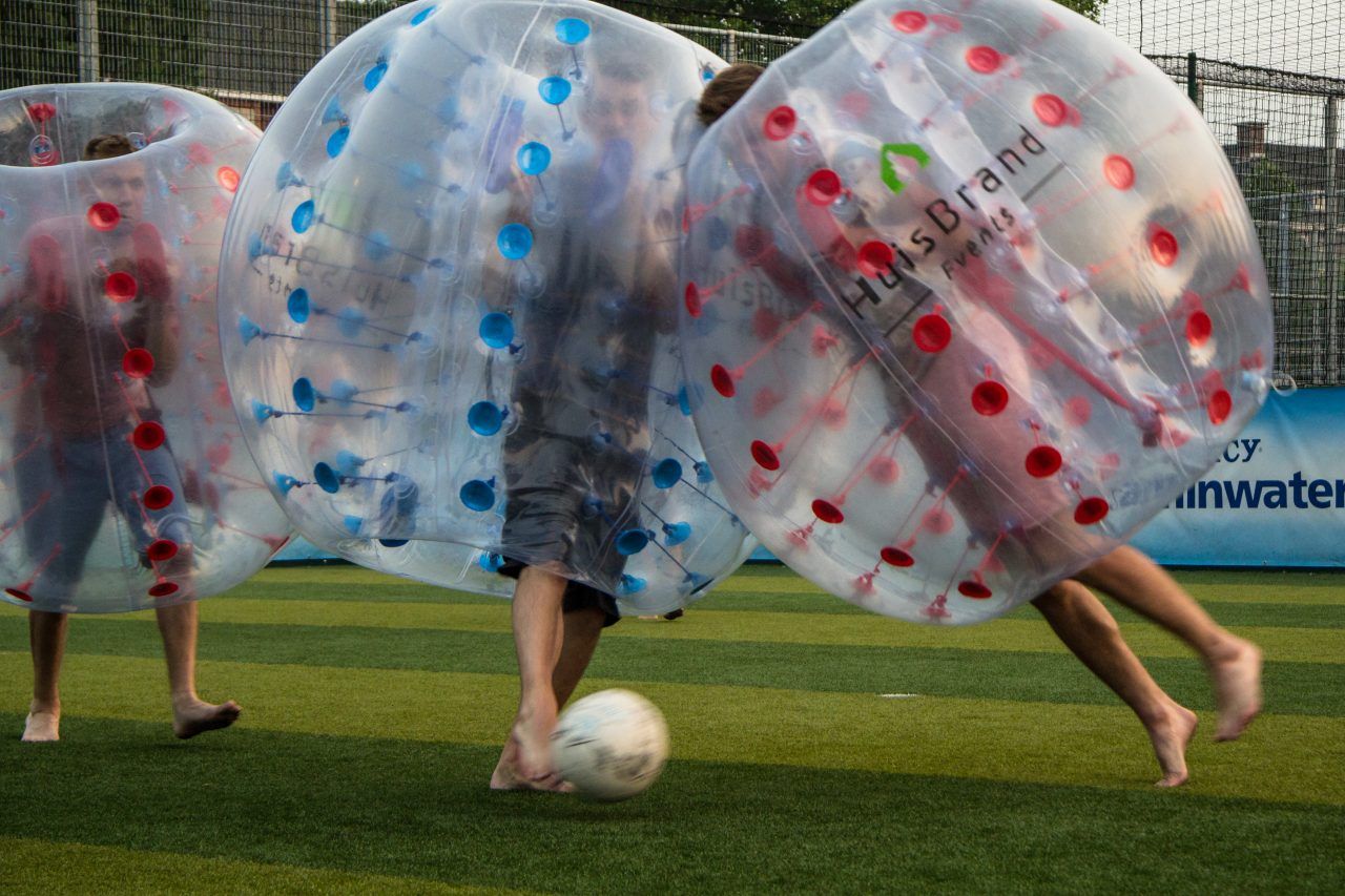 Bubble Soccer is the same as normal soccer, divided in two teams. Each team player has a plastic ball around his body. The goalkeeper ‘bubbled’ against the goalposts and the crossbar, the striker ‘bubbled’ the defender down and no one has an injury afterwards!
